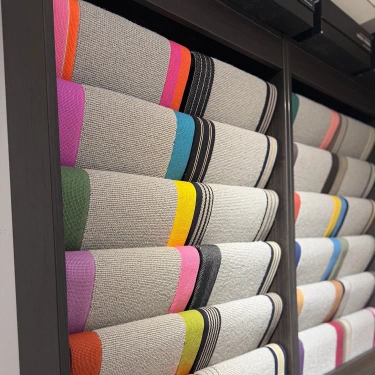 The finish of the edge also makes a big difference. Whipped edges, cotton or leather bindings and contrast borders can make a runner look far more considered and finished. If you are unsure, it helps to bring photos and measurements into the showroom so you can compare samples against your stair colour, wall colour and handrail.